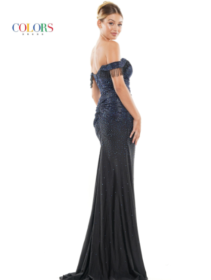 Off the Shoulder Scuba Hot Stone Dress w/ Fringe