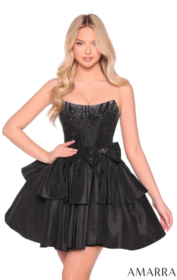 Scoop Neck Corset Bubble Skirt w/ Bow and Hot Stones