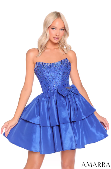 Scoop Neck Corset Bubble Skirt w/ Bow and Hot Stones